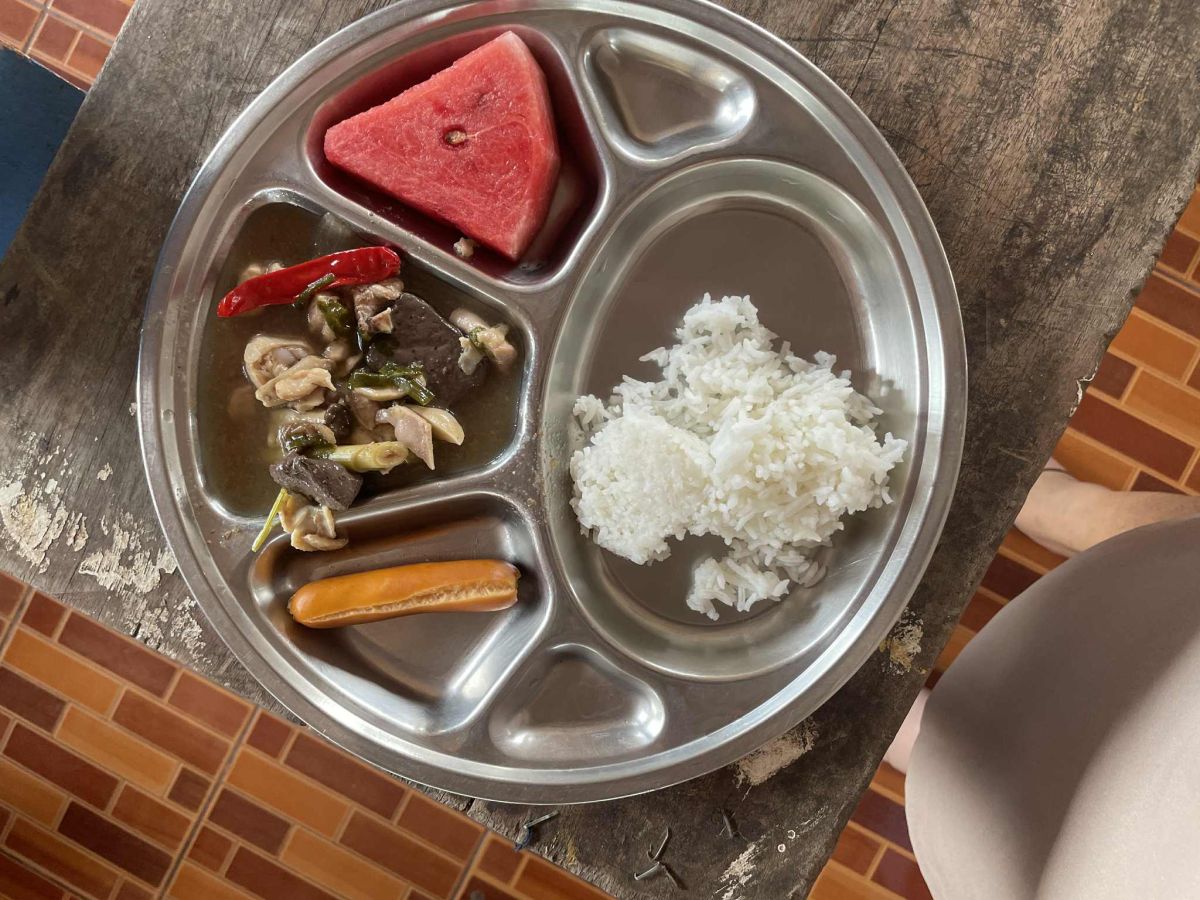 เมนูต้มข่าไก่ใส่เลือด และเห็ดนางฟ้า เป็นอาหารกลางวันที่มีคุณค่าทางโภชนาการสำหรับนักเรียน